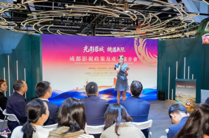 推介會(huì)上,主辦方通過政策推介短片,系統(tǒng)展示了成都影視產(chǎn)業(yè)的政策優(yōu)勢(shì)、產(chǎn)業(yè)布局和服務(wù)能力。成都將影視動(dòng)漫納入數(shù)字文創(chuàng)產(chǎn)業(yè)高質(zhì)量發(fā)展的六大核心賽道,出臺(tái)《促進(jìn)影視產(chǎn)業(yè)發(fā)展的若干政策》,形成省、市、區(qū)三級(jí)政策聯(lián)動(dòng)體系,覆蓋劇本孵化、精品創(chuàng)作、后期制作、宣傳發(fā)行、IP轉(zhuǎn)化、人才培養(yǎng)等全鏈條,為影視項(xiàng)目提供全方位保障。